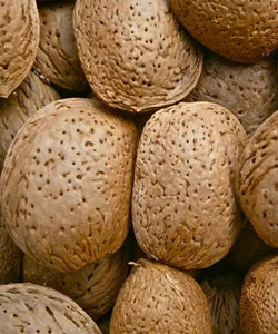 بادام سنگی، همان طور که از اسم آن معلوم است دارای پوست مستحکمی می باشد که برای رسیدن به مغز آن حتما باید شکسته شود. یکی از مزیت های درخت بادام سنگی این است که مقاومت خوبی در مقابل کم آبی دارد و به همین دلیل در باغ های کشت دیمکاشته می شود. این بادام بصورت شور و تفت داده شده در آجیل استفاده می شود و همچینین در صنایع دارویی و غذایی کاربرد فراوان دارد.